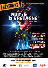 Retrouvez les Champions de Bretagne, Dan ar Braz, Cécile Corbel et bien d’autres, pour 3h de spectacle, au zénith de Lille le 6 avril 2013 et au zénith de Caen le 13 avril.