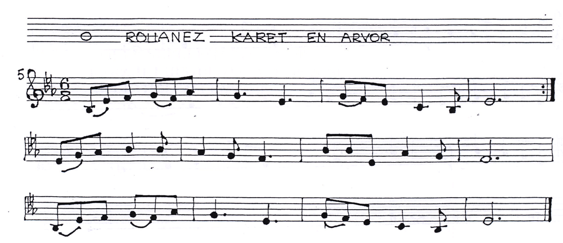 - Cantique « O Rouanez Karet en Arvor » - partition jointe - ensemble des sonneurs présents