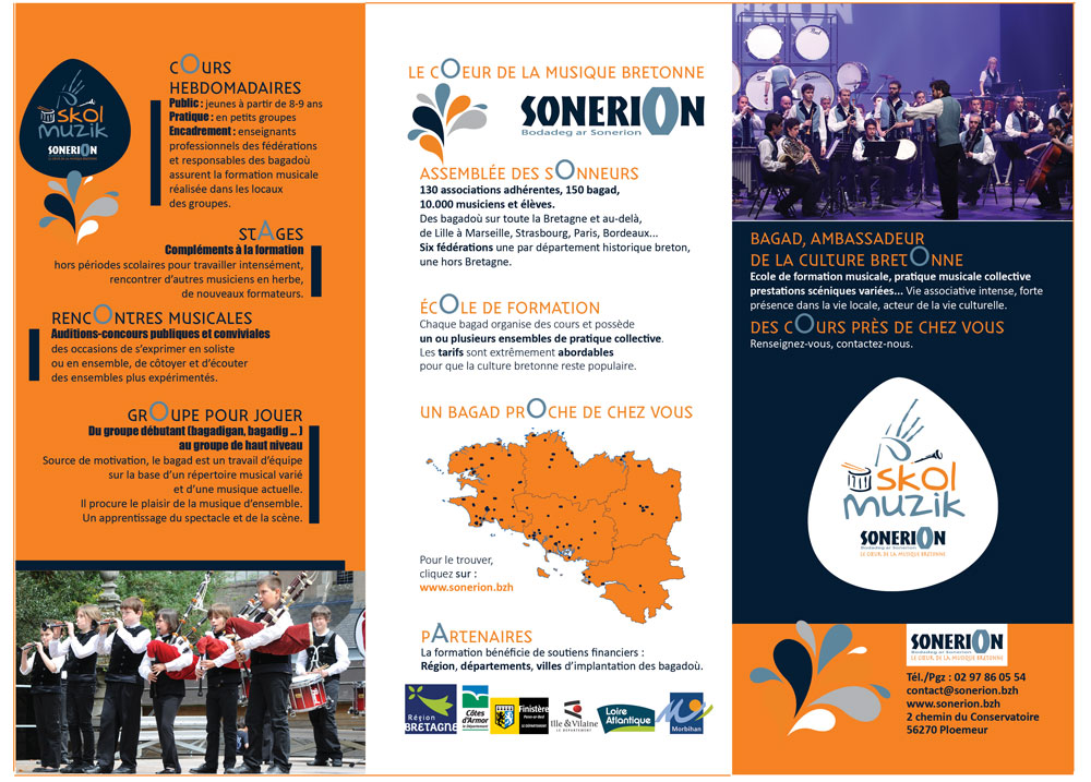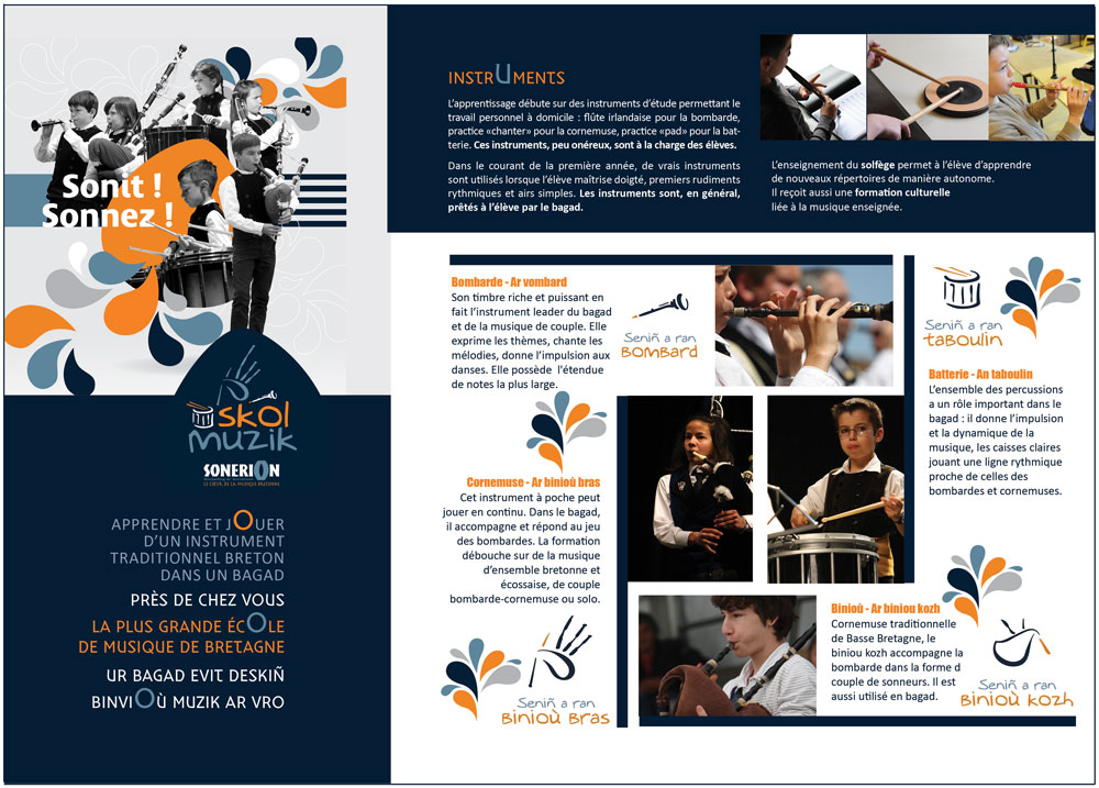 Vous voulez jouer de la bombarde, de la cornemuse ou de la batterie dans un bagad, inscrivez-vous à Skol Muzik Sonerion.