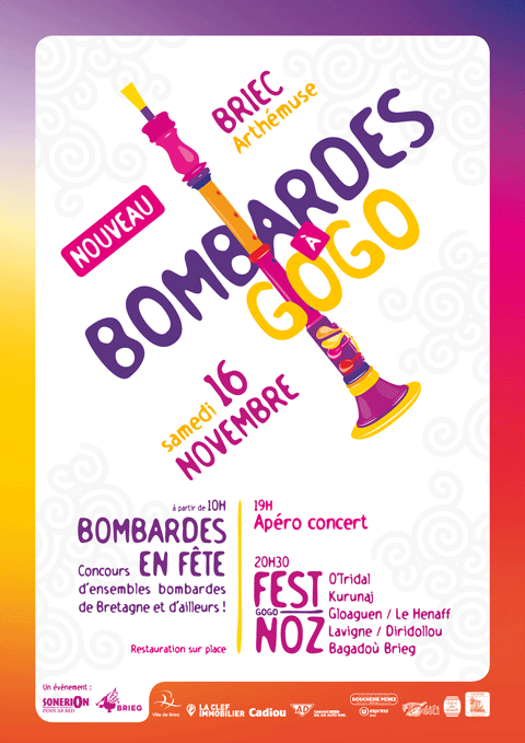 Bombardes en fête se déroulera cette année le SAMEDI 16 Novembre à l’Arthémuse à Briec et sera suivi d’un apéro-concert ainsi que du traditionnel fest-noz du Bagad Brieg : la Gogo-Noz!